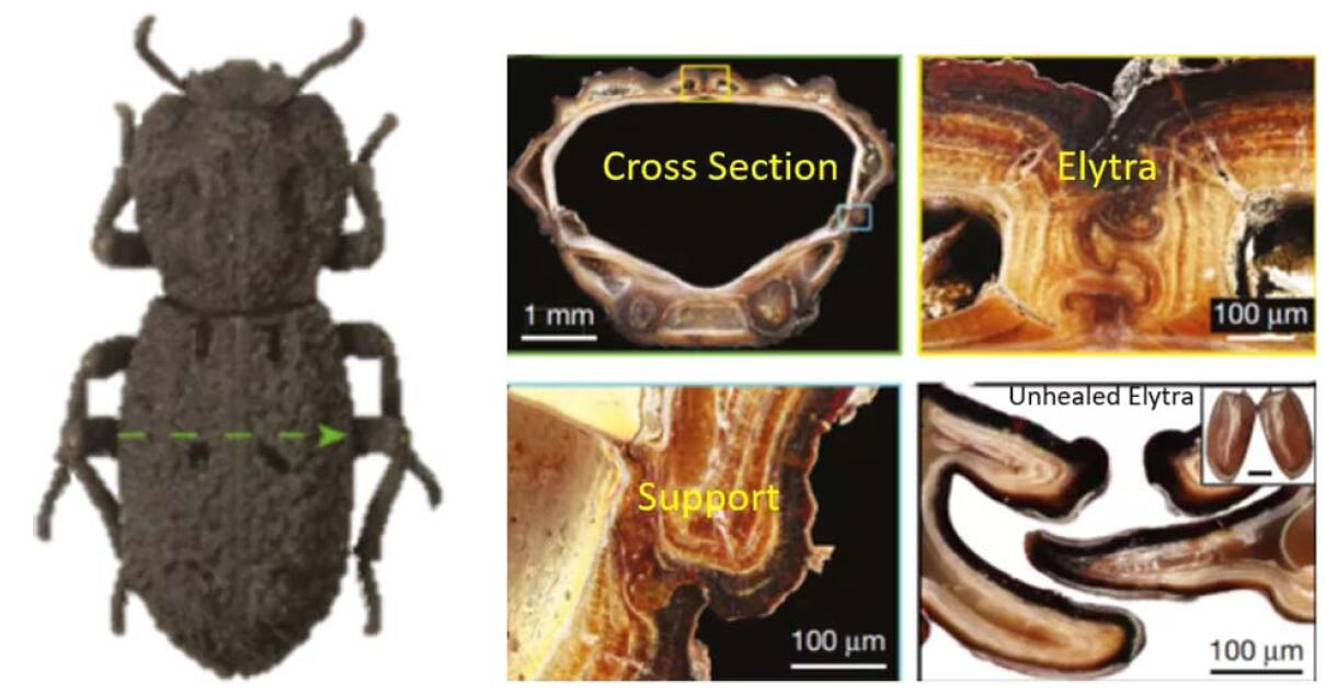 [2] Rivera J, Hosseini M et al. Toughening mechanisms of the elytra of the diabolical ironclad beetle. Nature https://doi.org/10.1038/s41586-020-2813-8 (2020).