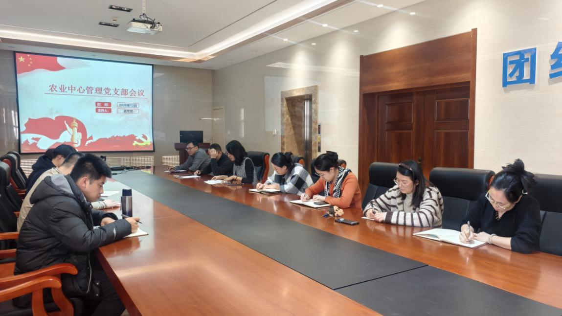 12月29日,农业中心管理党支部在综合楼六楼会议室召开“学习2025年中央经济工作会议精神”主题党日活动,会议由党支部书记孟芳芳主持。