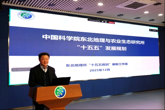 为深入贯彻国家“十五五”规划关于农业强国的战略部署,落实中国科学院“抢占科技制高点、实现高水平科技自立自强”的工作要求,2025年12月29日,中国科学院东北地理与农业生态研究所(简称东北地理所)召开“十五五”战略规划研讨会。吉林农业大学李玉院士,西北农林科技大学邵明安院士,中国科学院南京土壤研究所张佳宝院士,中国科学院地理科学与资源研究所于贵瑞院士,吉林省农业科学院王立春院士,中国农业大学李洪文院士,中国科学院南京土壤研究所张甘霖研究员,中国科学报社社长赵彦,吉林大学潘洪玉教授,东北师范大学王升忠教授,东北地理所何兴元研究员、梁正伟研究员、刘晓冰研究员、张平宇研究员、李秀军研究员、宋长春研究员、冯献忠研究员等专家参会指导;中国科学院科技创新发展局重点实验室处、规划与评估处(奖励办)处长潘韬应邀出席会议;东北地理所所长姜明,党委书记、副所长王宗明,副所长李向楠、李禄军、祝惠出席会议,研究所各科研单元及管理支撑部门人员参加会议,开幕式由李禄军主持。