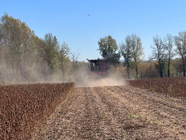 金秋九月,三江平原上一派丰收景象。成片的大豆田里,豆荚饱满、色泽金黄,微风拂过,哗哗作响。