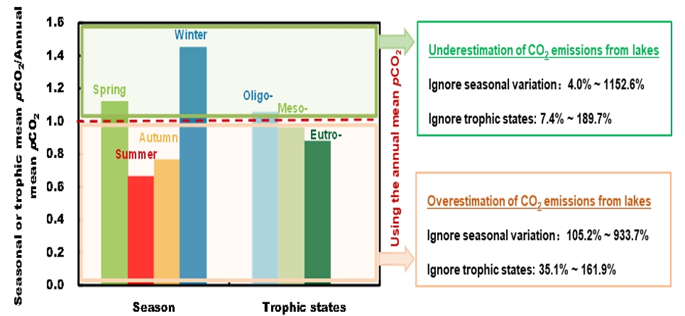 图1 季节及营养化程度对估算中国湖泊CO2排放通量的影响