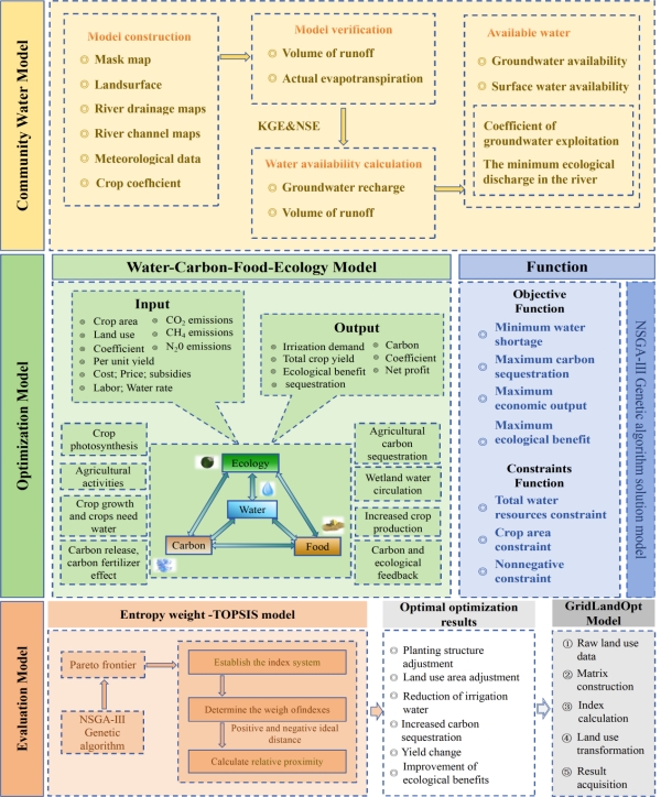 据统计,农业用水在全球总用水量中占比高达70%,而地下水开采量的67%更是被用于灌溉。农业快速扩张,不仅对水资源供给造成巨大压力,也侵占了森林、草地和湿地(简称林草湿)等生态系统的生态用地,打破了生态系统连通性,扰乱了自然生态系统碳循环过程。考虑粮食安全和生态安全的水土资源优化配置涉及到水文、生态、农业、地理、经济等多个学科领域,同时考虑到了水资源和土地资源之间存在相互匹配与均衡的关系,任何一种资源的短缺都会限制另一种资源的利用,从而降低水土资源的综合利用效率。因此,如何协调与权衡有限的水资源和土地资源,提升水资源利用效率,增加粮食生产能力,提高保护生态系统连通性,增强碳汇能力,仍然是一个复杂的科学问题。