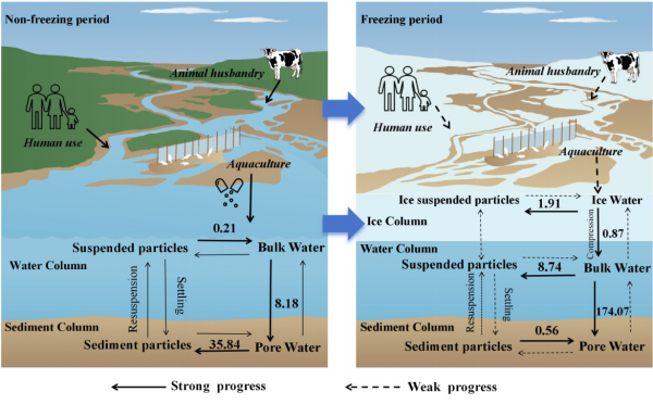 图2 抗生素在非冰封期和冰封期多介质的迁移与运输