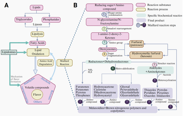图1脂质热降解机理(A)和美拉德反应过程(B)