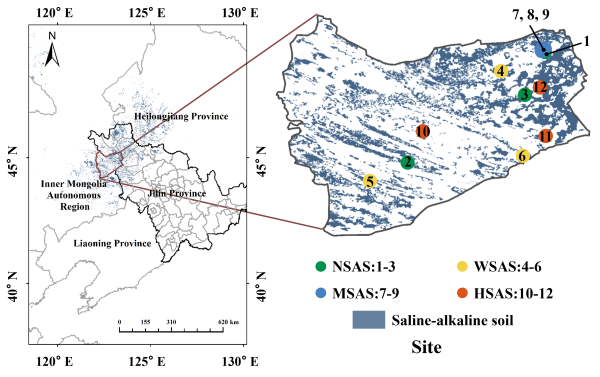 图1 吉林省白城市通榆县盐碱地采样点分布图