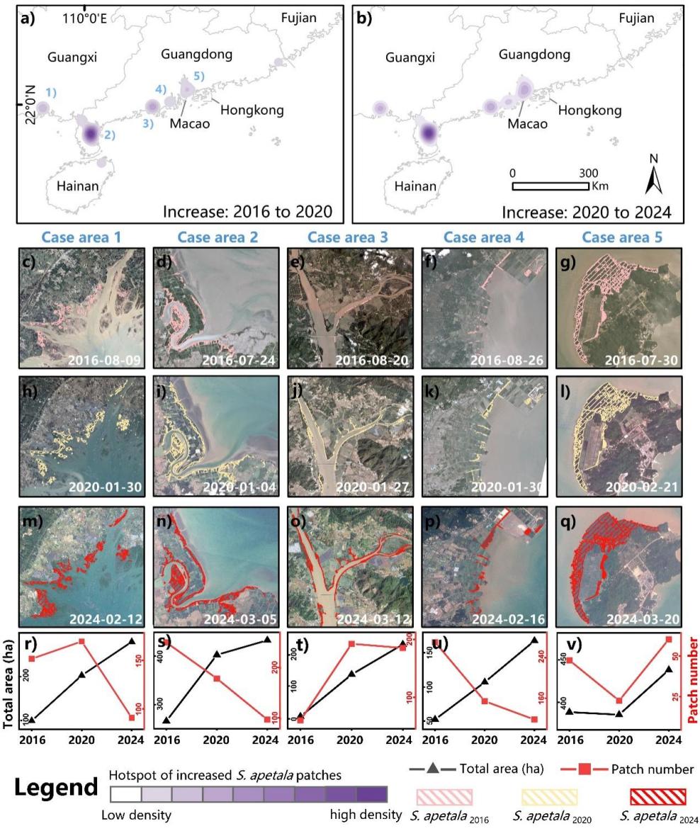 无瓣海桑自1991年以来被广泛应用于滨海红树林恢复与互花米草治理,其潜在入侵风险已受到持续关注。20世纪90年代,该外来红树物种已表现出较强的自然更新与扩散能力,迅速侵入香港、澳门等地区,并被当地明确界定为入侵物种。2021年,国家自然资源部印发《海洋生态修复技术指南(试行)》,明确提出加强对无瓣海桑的持续跟踪监测,并及时清除扩散至原生植物群落中的外来红树植物。然而,在国家尺度上,无瓣海桑扩张进程的遥感评估尚未系统开展,制约了其生态风险的科学评估,也难以为红树林湿地植被保护、生态修复及精细化管理提供可靠的决策支撑。