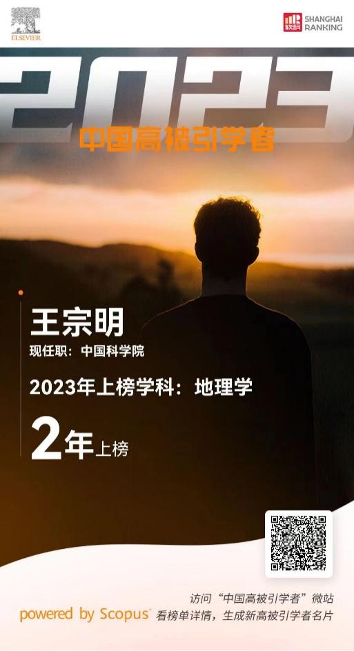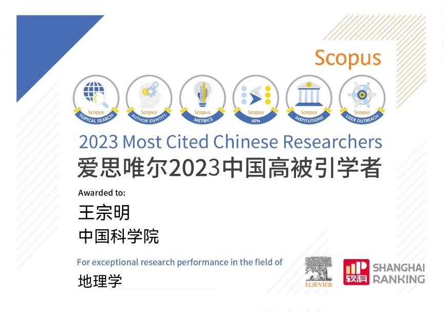 王宗明研究员连续两年入选Elsevier“中国高被引学者”榜单