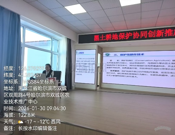 1月30日,严君在哈尔滨市双城区讲解了科学整地的具体方法,包括不同土壤类型下的深耕、旋耕、耙地,有机肥、生物炭及秸秆还田等操作技术要点,及如何通过合理整地方式改善土壤结构,提高土壤保水保肥能力及长效提升土壤地力。为双城区的农技人员提供了一套科学、实用的黑土区旱地整地技术方案。