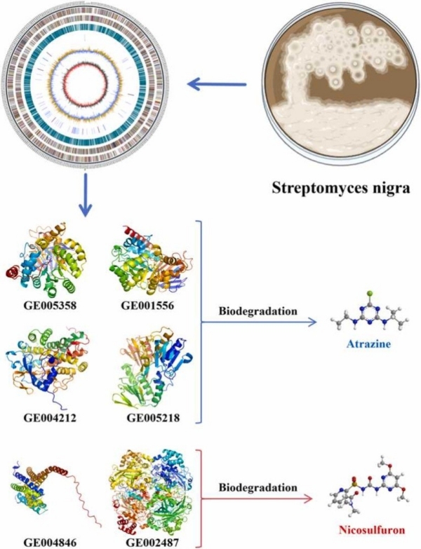 论文信息:Shengchen Zhao, Jihong Wang*. Biodegradation of atrazine and nicosulfuron by Streptomyces nigra LM01: Performance, degradative pathway, and possible genes involved. Journal of Hazardous Materials. 2024, 471: 134336.