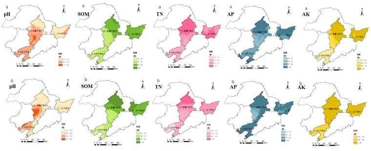 为精准把握黑土区土壤质量现状与动态,课题组全面完成了三大平原(三江平原、松嫩平原、辽河平原)2812个表层土壤样品的系统采集(图1),并整合分析了四个始建于1979-1990年间的长期定位试验站(黑河、海伦、公主岭、沈阳农业大学)的样品与数据,涵盖了不同管理措施下的土壤演变信息。所有样品均进行了多维度指标(涵盖基础理化、微生物及酶活性等)测定,构建了黑土地农用土壤质量多尺度时空数据库。
