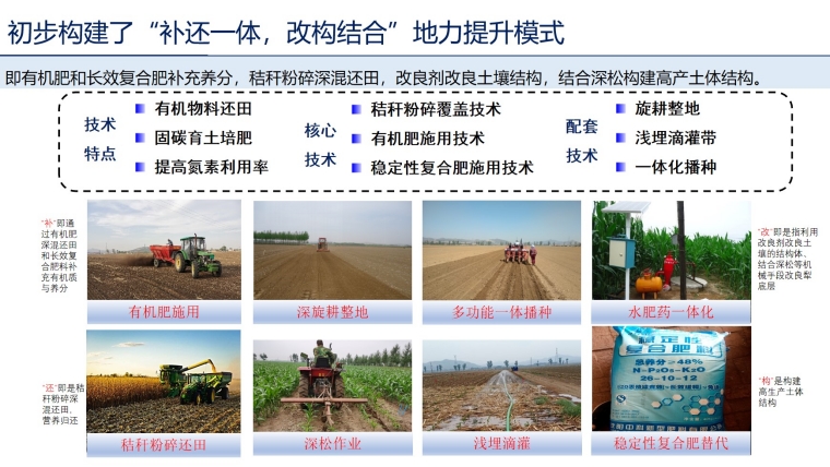 核心技术创新与集成:在土壤增碳肥田、耕层扩库增容、土壤障碍因子消减等关键技术方面持续优化与集成。创新性提出了“黑土耕地土壤有机质全耕作层补给技术”,相关研究与验证正深入推进。针对辽河平原等区域,初步构建了黑土培肥与产能提升的关键技术组合与应用模式框架。