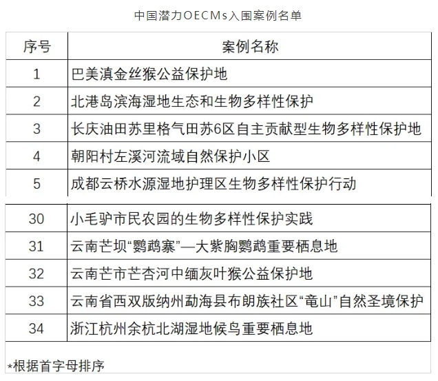 首批中国OECMs潜力案例