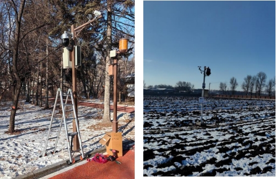吉林大学农业实验基地和长春市南湖公园示范地点分别代表了长春市城郊农田绿地和城市公园绿地,东北地理所与吉林大学等单位科研团队对两个示范地进行多次细致考察,比较了两个示范地内鸟类、植被、昆虫等生物的群落多样性与分布情况,对生物多样性监测技术的落位地点与建设规划进行讨论,在吉林大学农业实验基地和长春市南湖公园示范地选定了生物多样性监测场景。同时,对生物多样性监测设备落位地点进行调研考察,考虑到电源、观测视野等因素,确定了生物多样性监测设备的具体落位地点。依据设备安装技术人员要求,购买了相应的监控设备,并进行设备基座施工与设备安装,实现生物多样性监测技术成功落地。