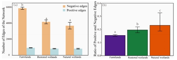 图2 微生物共生网络揭示湿地恢复过程中微生物的互作关系