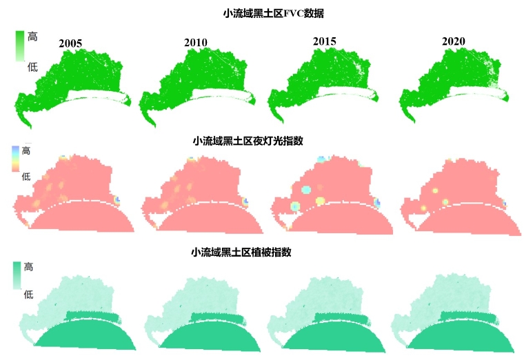 本课题展开了大规模的数据收集和整合工作,涉及多个环境和气候因素。首先,收集了土地利用类型的数据,以便分析不同土地利用方式对生态系统的影响。同时,为了更好地理解气候对生态环境的作用,收集了整个东北地区的气候数据,包括1980年至2015年的站点数据,气温、降水、辐射、风速和辐射等逐日观测数据,2016年至2100年的CMIP6情景数据,SSP126、SSP245、SSP585三个情景气温、降水、辐射、风速和辐射等日值预测数据;基于数字高程数据,生成了坡度、坡向等地形数据。同时,还收集了土壤容重、pH、有机质含量等土壤数据,以及氮磷钾肥等化肥、粪肥的使用数据。另外,植被覆盖率和植被指数数据也被纳入分析,它们能够提供有关植物生长状况和生态系统健康的重要信息。此外,我们还收集了夜灯光指数数据,这有助于评估人类活动对生态环境的干扰程度。通过综合这些数据,我们能够全面了解黑土区小流域生态环境的现状,并为后续的生态安全评估和预警提供坚实的基础。