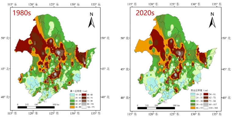 1980s~2010s东北区黑土层厚度空间分布