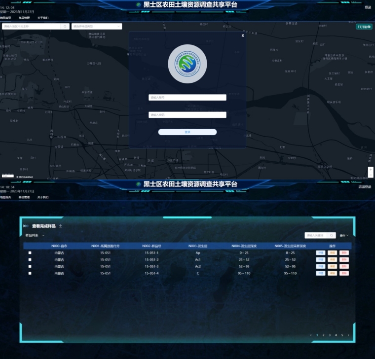 图1黑土区农田土壤资源调查共享平台登录与管理界面