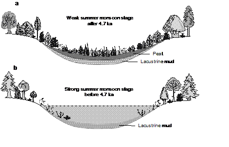 针对这一科学问题,我所湿地演化与生态功能学科组以三江平原天然沼泽湿地为研究对象,进行了系统的野外调查、泥炭柱芯采集和实验分析,并收集整理分析了已有资料。在此基础上利用频率统计方法确定了三江平原泥炭地发育的历史过程。研究结果表明,尽管三江平原泥炭地的发育时期涵盖了整个全新世,然而80%的沼泽湿地发育于4600 yrBP之后的全新世中晚期。根据沉积相的变化发现该地区沼泽湿地的大多是在浅湖消亡的基础上发育而来的。已有的研究表明,三江平原气候属东亚季风控制的典型温带季风气候,早中全新世是夏季风相对强盛的季风最大期,而4600 yrBP 恰处于东亚夏季风衰退的关键期。因此,通过综合对比泥炭地发育频率变化和东亚季风演化的规律,该研究认为三江平原泥炭地的发育主要受控于东亚夏季风强度的变化。在早中全新世东亚夏季风最大期,强盛的夏季风带来充足的降水,使三江平原低洼地貌区域形成水位较深的浅湖环境。而4600 yrBP以后,随着夏季风的减弱,早期的湖泊开始逐渐消亡,沼泽湿地在此基础上开始发育。