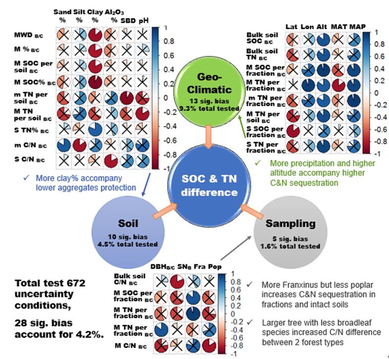 图5. 关于地理气候条件、土壤和阔叶树与针叶树采样差异的不确定性。