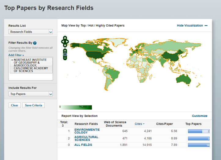 根据科睿唯安最新一期的基本科学指标数据库(Essential Science Indicators,以下简称“ESI”)数据(覆盖时段为2008年1月1日至2018年10月31日),中国科学院东北地理与农业生态研究所共有2个学科进入ESI全球排名前1%行列,分别为“农业科学”(AGRICULTURAL SCIENCES)和“环境科学与生态学”(ENVIRONMENT/ECOLOGY)。其中“农业科学”学科从2018年5月首次进入全球前1%后,排名稳步提升;“环境科学与生态学”学科于2019年1月首次进入全球前1%。